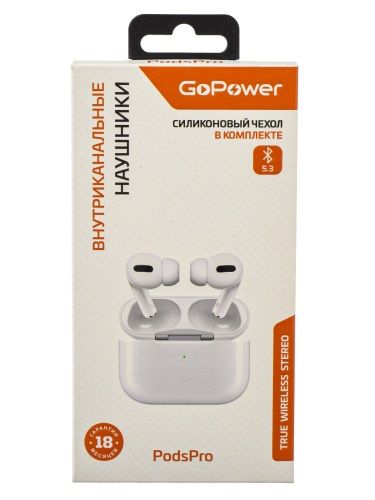 Читать все статьиГарнитура беспроводная «GoPower» PodsPro, Bluetooth 5.3, белый