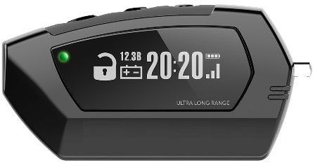 В брелоке Pandora DX90 использован графический OLED-дисплей, на который, несмотря на небольшие габариты устройства, выводятся крупные пиктограммы активных событий и множество информативных виджетов. Яркости и контрастности брелока достаточно для отличное видимости даже в условиях прямого солнечного света. Брелок использует диалоговый код и многоканальный радиотракт 868 МГц, что обеспечивает стабильную работу даже при высоком уровне помех, а также высокую дальность действия.