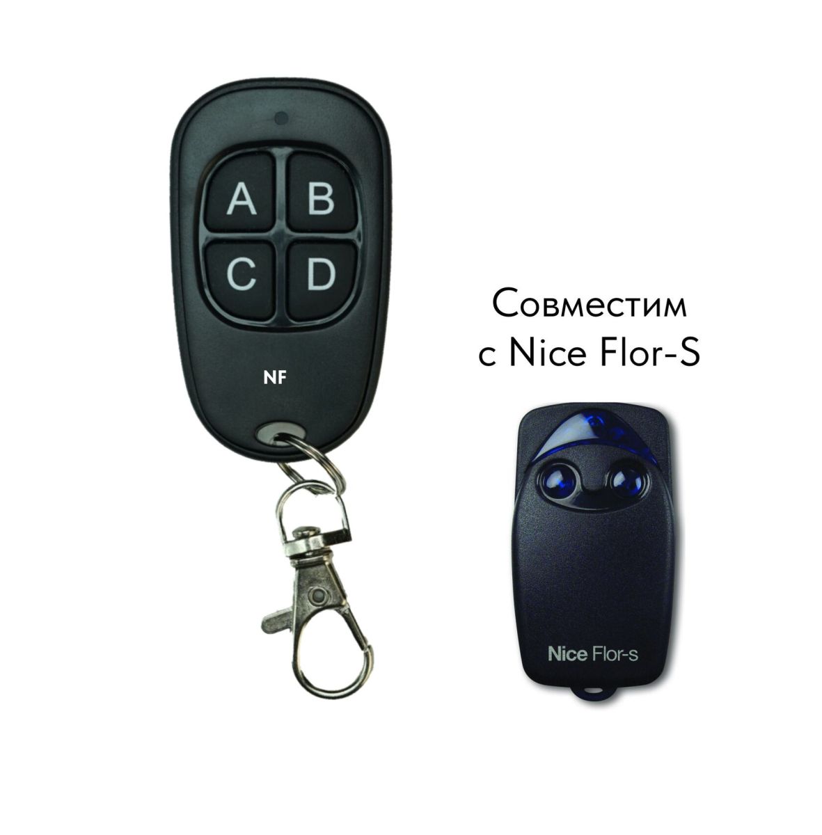 Пульт NF является полноценным 4-х канальным аналогом пультов Nice Flor-S (Flor-E, VR, ONE, ON, INTI) с динамическим кодом.
